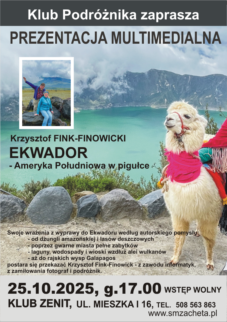 Klub Zenit zaprasza 25.10.2025 o godzinie 17:00 na prezentację multimedialną” Ekwador- Ameryka Południowa w pigułce” Czytaj więcej…