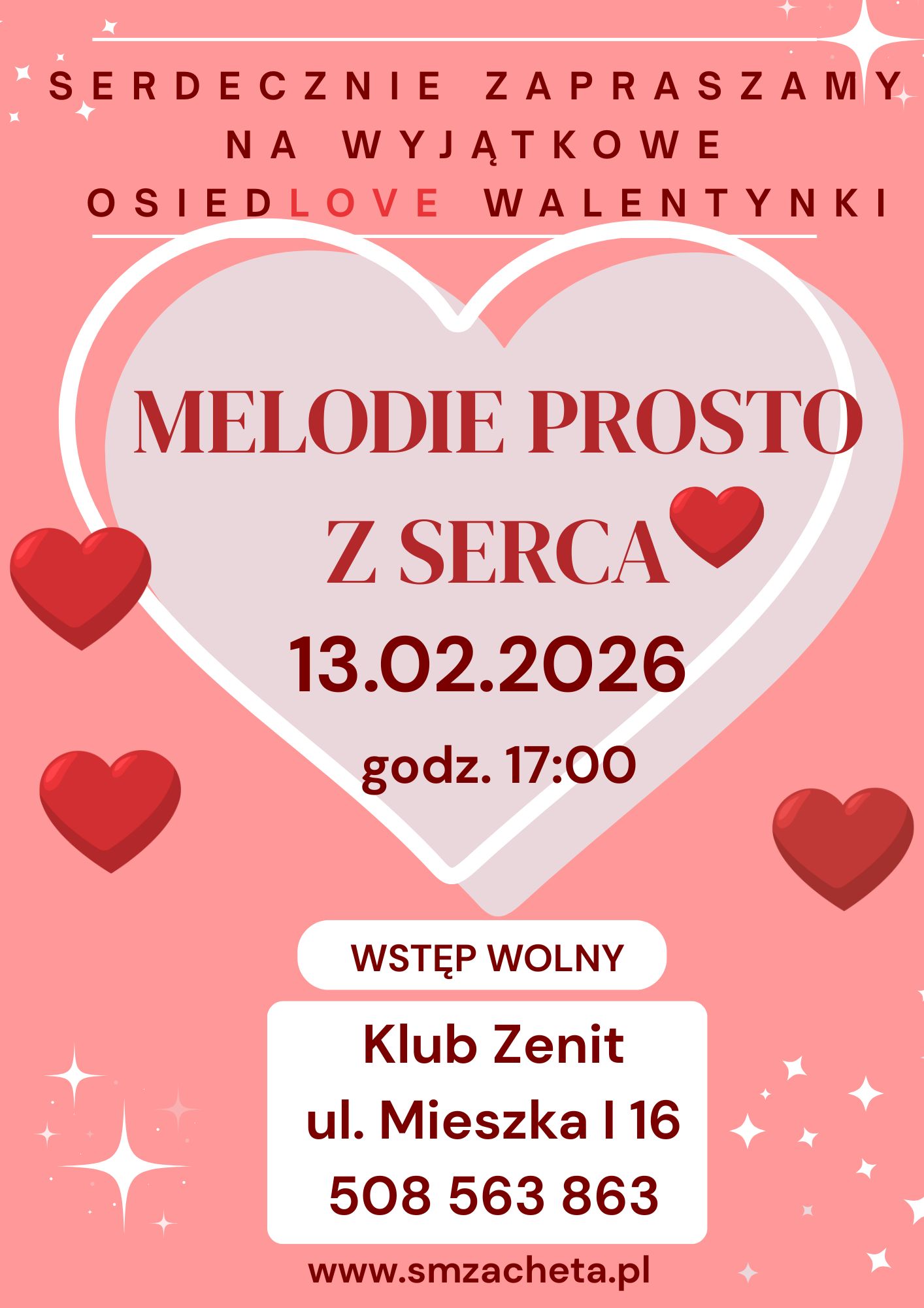 Klub Zenit zaprasza na Wyjątkowe Osiedlowe Walentynki 13 lutego 2026 o godzinie 17:00. Czytaj więcej…