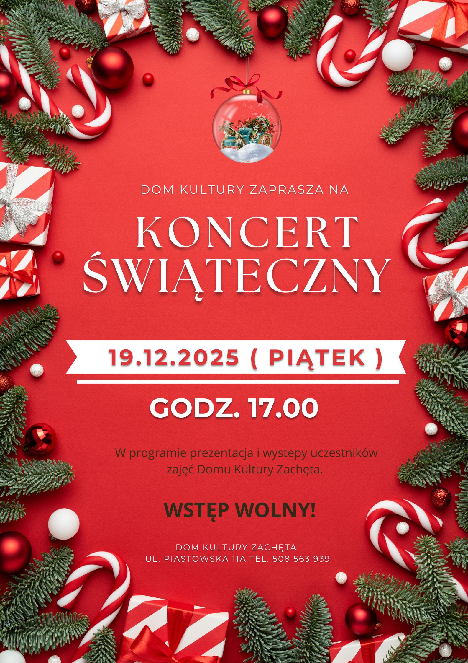 Dom Kultury Zachęta zaprasza na Koncert Świąteczny 19 grudnia 2025 o godz. 17:00. Czytaj więcej…