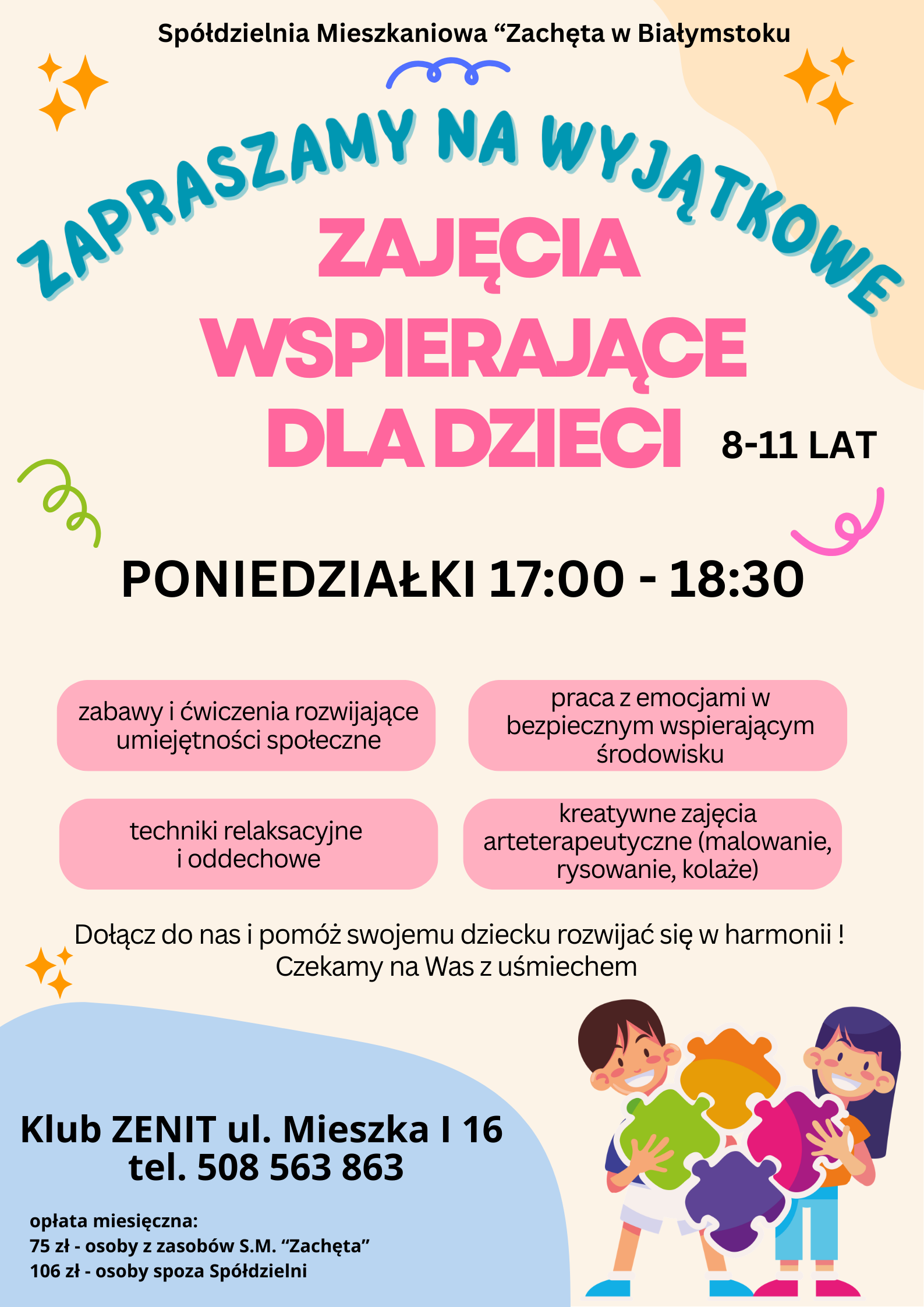 Zapraszamy na wyjątkowe zajęcia wspierające dla dzieci w wieku 8-11 lat w poniedziałki w godzinach 17:00-18:30. Czytaj więcej…